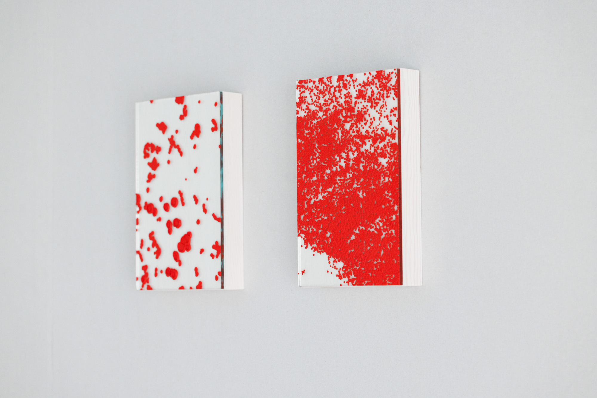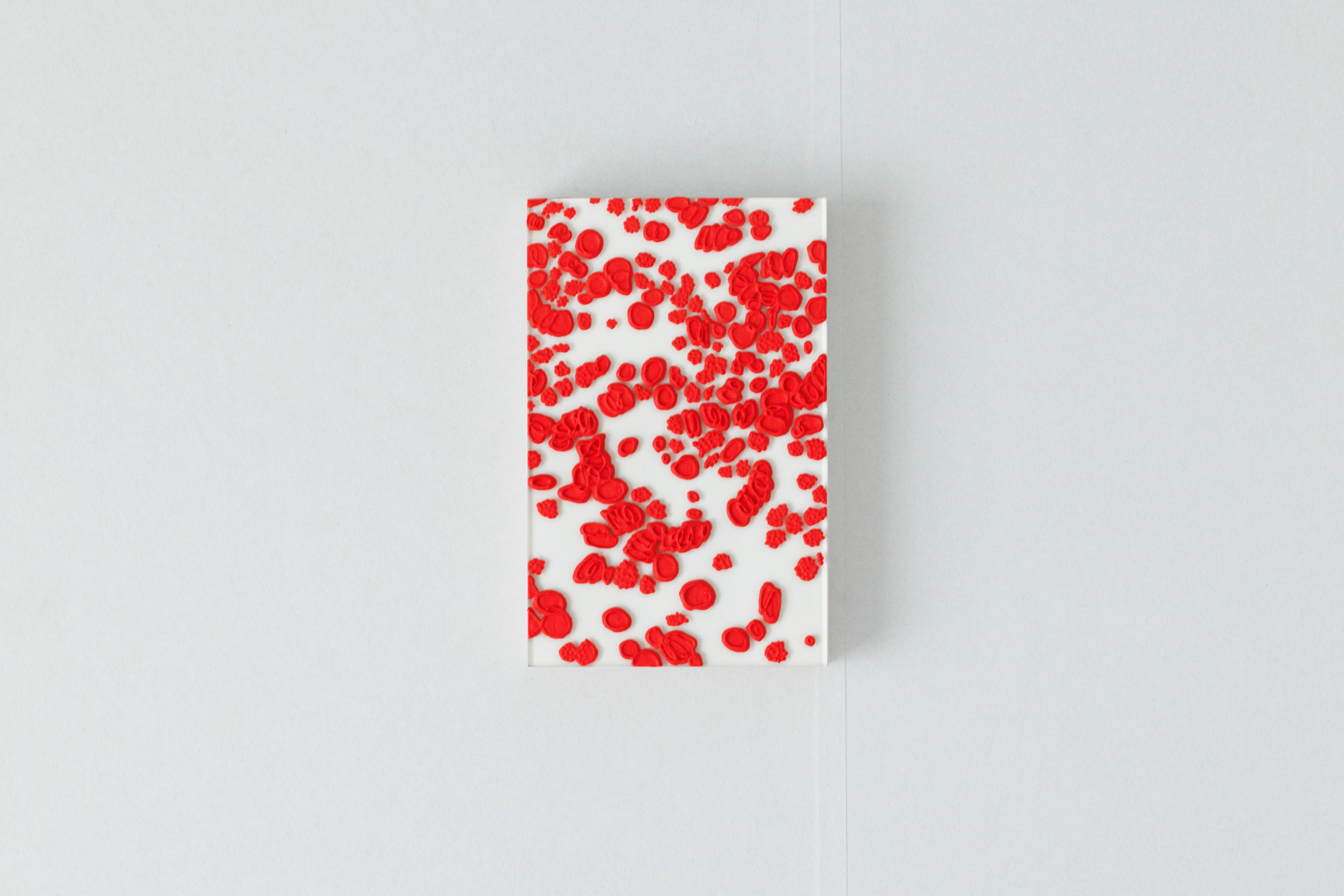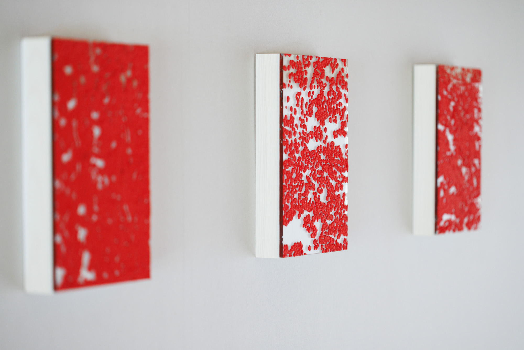 In “under my skin,” I observe my own blood cells through a microscope and paint what I see using vivid red pigments.