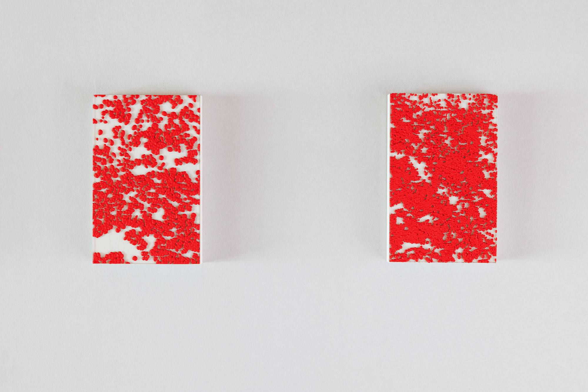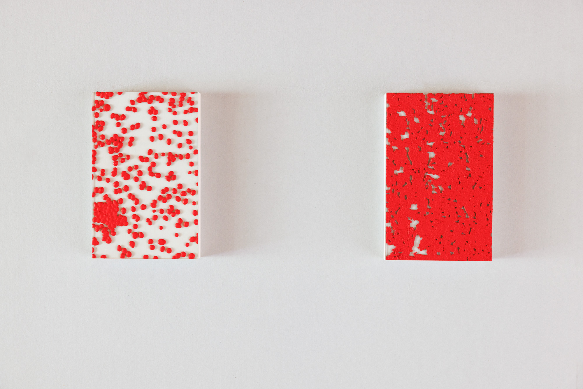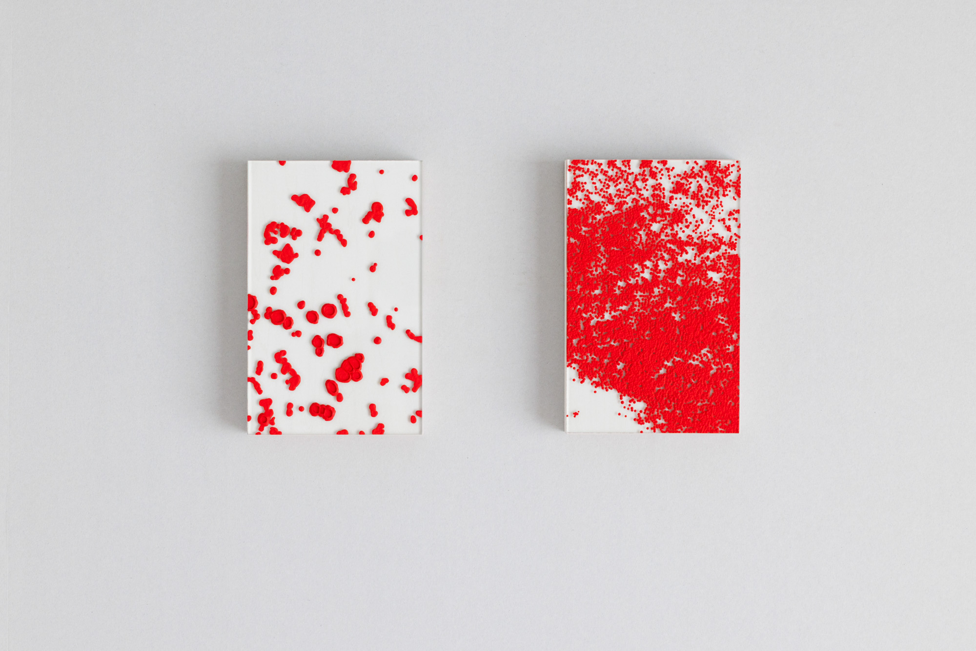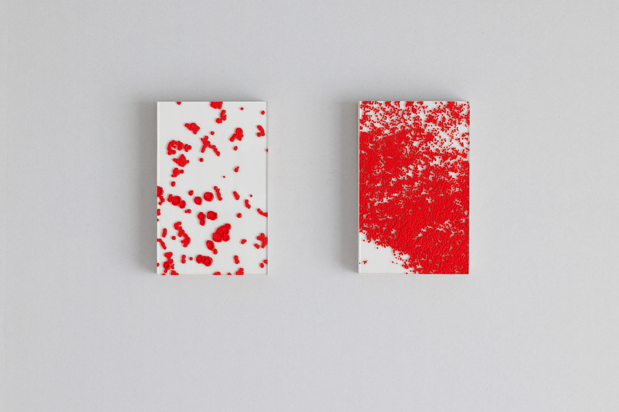 In “under my skin,” I observe my own blood cells through a microscope and paint what I see using vivid red pigments.